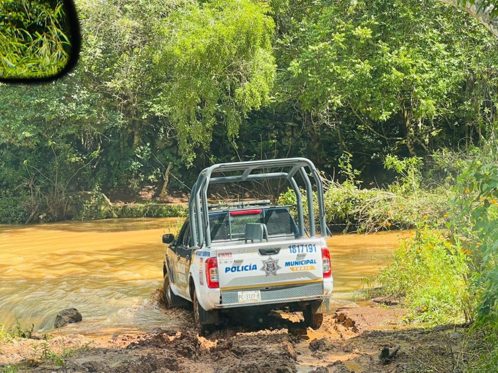 Elementos de la Policía Municipal realizan recorridos por caminos y comunidades rurales, verificando el estado de las vías de comunicación y brindando apoyo a las personas que pudieran requerir asistencia.